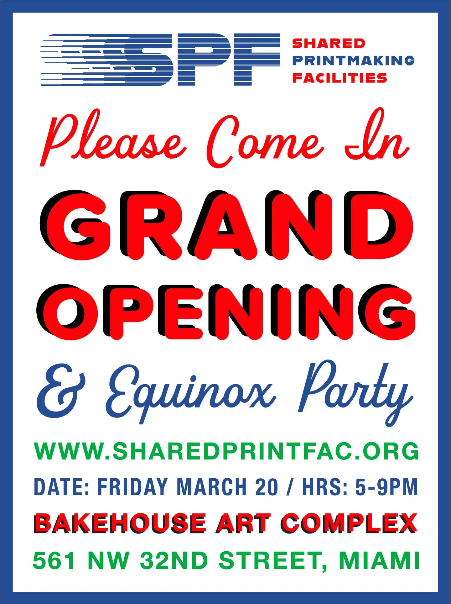 Think of this as a very soft opening of SPF and you will be the first to see it! After this event SPF will begin opening up the studio for rental in a limited capacity to Bakehouse artists."
